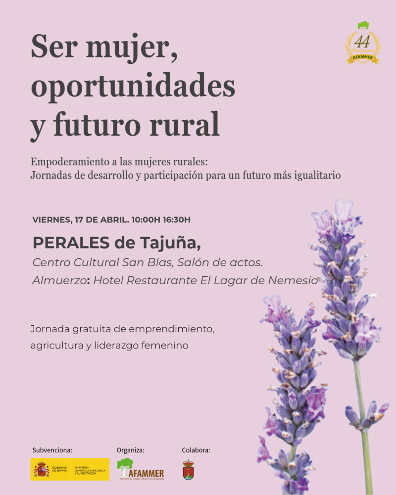 AFAMMER (Asociación de Familias y Mujeres del Medio Rural), con la financiación del Ministerio de Agricultura, Pesca y Alimentación, organiza la jornada gratuita "Ser mujer, oportunidades y futuro rural".