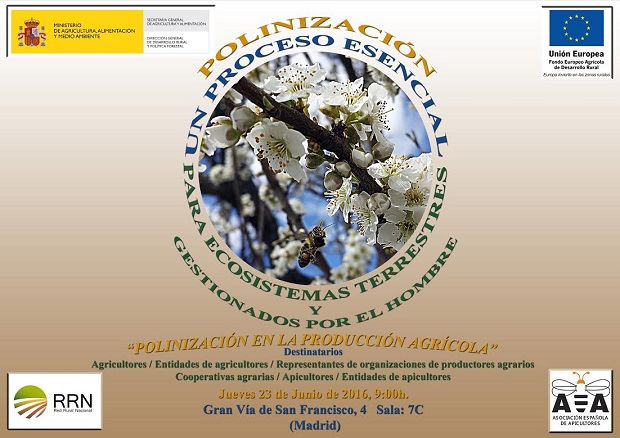 El objetivo de la jornada “Polinización en producción agrícola” se centró en la necesidad de la profesionalización de los apicultores debido al beneficio económico, hortícola y ambiental de la polinización, el encuentro, propuesto por la Asociación Española de Apicultores, tuvo lugar el 23 de junio y fue organizado por la Dirección General de Desarrollo Rural y Política Forestal, MAGRAMA.