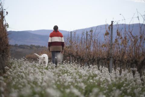 Viñedo y bodega en la pequeña localidad de Fígols de Tremp. La joven enóloga Eva Carmona, tomando relevo familiar de la finca, introdujo el manejo regenerativo del suelo, incluyendo prácticas de cubiertas vegetales para proteger el suelo frente a la erosión, reforzar su fertilidad y favorecer la biodiversidad de los viñedos.