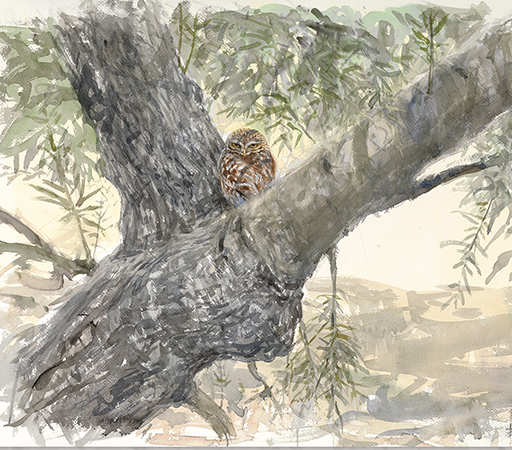 El negativo de una fotografía reproduce los claros y oscuros de manera contraria a como son: lo blanco aparece negro y viceversa. Una analogía parecida puede darse al observar los animales que habitan un determinado lugar porque, según cuáles sean y cómo se comporten, se pueden deducir las actividades humanas con las que conviven. Así, los rebaños de ovejas requieren de pastores y prados; y los aguiluchos, de cultivos de cereal para anidar. Esta es la idea que subyace tras la exposición La forma del viento, una colección de 70 óleos, acuarelas y dibujos de aves retratadas en su hábitat que repasa los 40 años que el artista y científico Juan Varela lleva pintando en la naturaleza, y que no dejan de ser trazos que esconden los indicios de las actividades antrópicas. El título de la muestra lo eligió él: “el viento no tiene forma, así que solo se reconoce en el movimiento de las cosas y en cómo se zarandean; y las aves lo utilizan para volar de una manera tan perfeccionada que parecen el negativo del viento”.