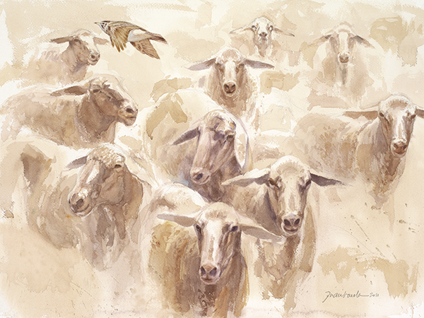 Un rebaño de ovejas marcha hacia sus pastizales de invierno generando una gran polvareda a su paso y levantando a las aves que frecuentan los márgenes de los caminos. La trashumancia, antes tan extendida, es hoy una práctica limitada por distintos motivos, entre ellos, la ocupación de las cañadas por construcciones ilegales.
