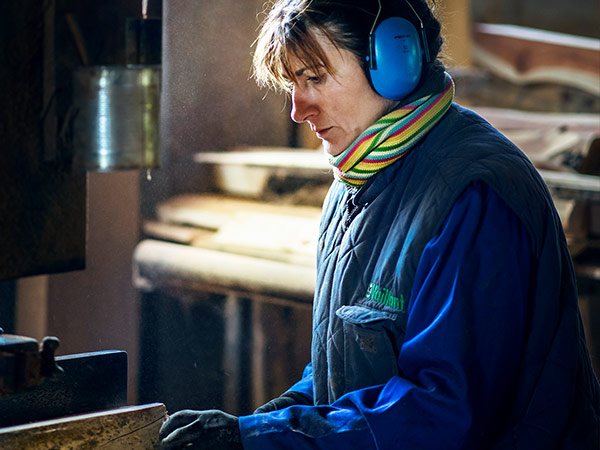 Sandra Catalina Moreno (44 años). Nació en Berlanga de Duero y vive en Muriel Viejo (86 habitantes). Tiene un negocio familiar de trabajo de la madera de sabina de Soria, de gran dureza y resistencia, con la que producen vigas, elementos decorativos, balcones y escaleras.