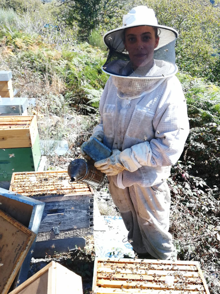 La vocación apicultora de María Lorenzo va más allá de la producción y abarca la divulgación y la recuperación de alvarizas del bosque de O Courel.