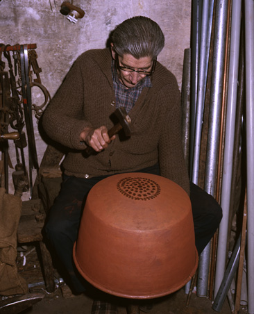 Joaquín Sirvent, uno de los últimos caldereros de España, empezó a trabajar el cobre para hacer ollas y otros utensilios con ocho años. Sus martillos, yunque o el mismo taller rondaban dos siglos de servicio.