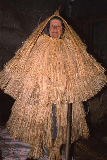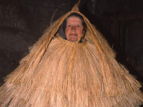 La pertinaz lluvia gallega motivaba la necesidad de piezas para el resguardo de cuerpo, cabeza y piernas; hechas con “xuncos do mes de xullo, que son mais bonitos que os de agosto”.