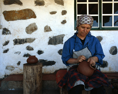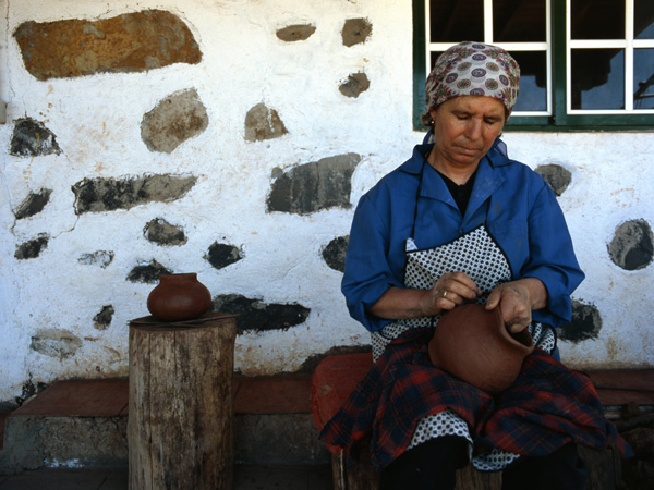 En La Gomera se conserva una técnica alfarera que moldea a mano el barro, mezcla de arcilla y arena volcánica, cuando ya está “amorosito”; y es reforzado luego con “almagre”, un lodo rico en óxido de hierro.