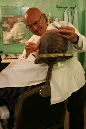 Alfredo Andreu aprendió la profesión en la barbería de su padre, en Alacón (Teruel). A la vuelta del campo “se afeitaba todo el mundo, cada quince días”.