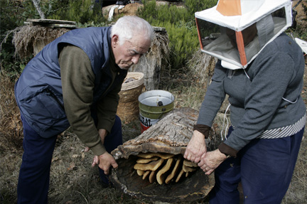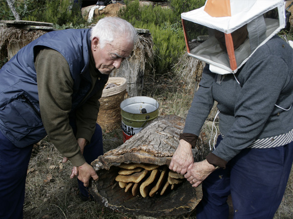 Los fríos parajes de Monasterio de la Sierra (Burgos) acogen estas colmenas en los troncos vaciados de sus robles. Teodoro y Victoria las mantienen con modos que heredaron de anteriores generaciones.