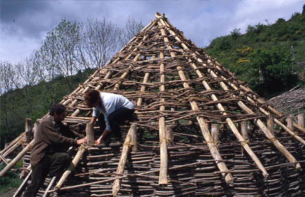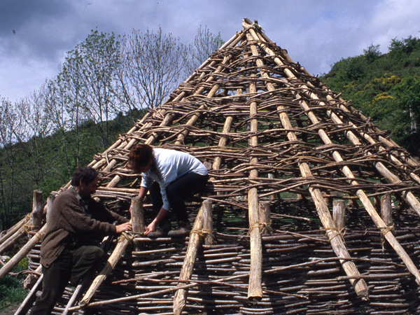 Monesma ha documentado técnicas constructivas en desuso, como las de los tapiales, ayudando a su recuperación; o históricas, como en esta recreación de cabañas de la Edad del Hierro.