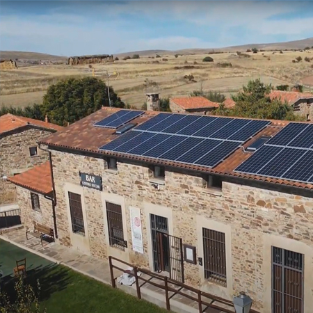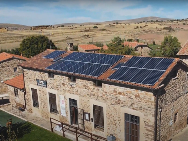 El Centro Social de Castilfrío de la Sierra (Soria) es uno de los tres puntos de abastecimiento fotovoltaico de su comunidad energética, Hacendera Solar. (Foto: Red Eléctrica de España)