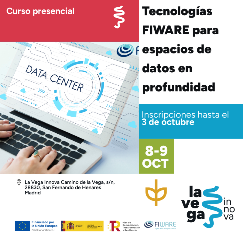 Segunda parte del curso “Introducción a Espacios de datos y aplicación en el sector AgriFoodTech”. A lo largo de los dos días de este evento presencial, profundizaremos en los componentes que FIWARE ofrece para la implementación de espacios de datos, combinando la descripción de las funcionalidades y estándares soportados, con la realización de ejercicios prácticos de despliegue y uso de componentes. Los asistentes contarán a partir de este curso con el conocimiento y herramientas necesarios para abordar con éxito proyectos de implantación de espacios de datos.