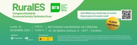 L’ARA vous invite à participer à RuralES, le 1er Congrès d’économie sociale et de territoires vivants , qui se tiendra le 22 décembre 2025 au rectorat de l’Université de Cordoue (Avda. Medina Azahara, 5 14071 Cordoue).