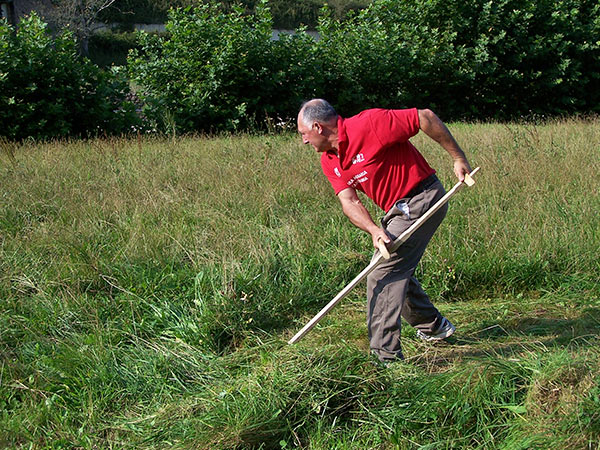 Siega del pasto fresco en zonas abruptas de montaña; se realiza a mano, con el uso del “dalle”, de forma tradicional.