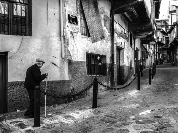 Antonio Alcázar Ojeda, de Garganta la Olla, consiguió el tercer premio con la fotografía Al principio y al final del camino que muestra el cruce entre un anciano y un niño en una calle de un pueblo de la Vera, comarca cuyos pueblos gusta de recorrer el autor fotografiando a sus gentes y la vida rural. Otra de sus fotos también forma parte de la exposición itinerante.