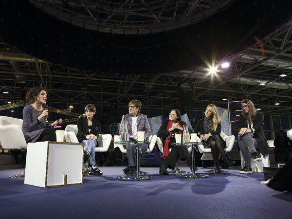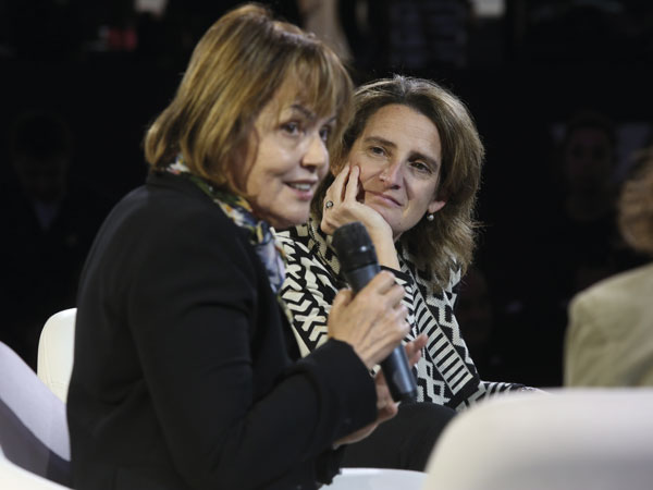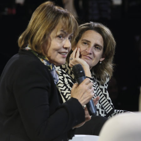 La chef María José San Román y Teresa Ribera en la jornada sobre cambio climático, biodiversidad y sostenibilidad alimentaria.