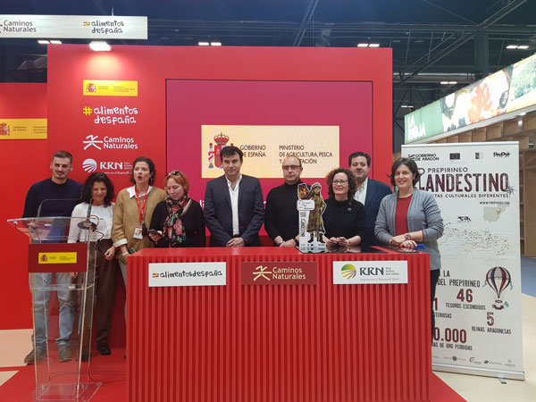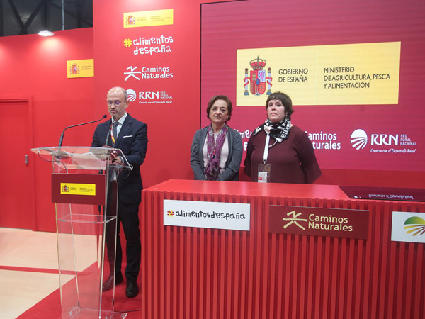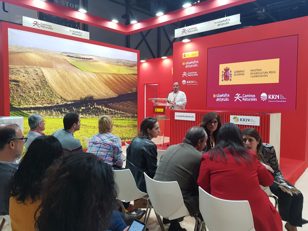 Grupos de acción local, organizaciones relacionadas con los programas Caminos Naturales y Alimentos de España y asociaciones de productores de razas autóctonas acudieron a la Feria Internacional de Turismo de Madrid (FITUR) bajo el paraguas que les ofreció el Ministerio de Agricultura, Pesca y Alimentación. En el estand, presidido por grandes fotografías que mostraban la belleza de nuestros paisajes y la calidad de nuestra gastronomía, se presentaron públicamente algunos de los sectores que más están contribuyendo a la dinamización del medio rural.